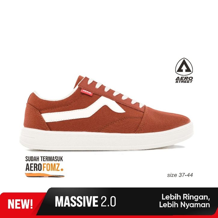Sepatu Pria Aerostreet 37-44 Massive Low 2.0 Natural Merah Bata Sepatu Sneakers Pria Sepatu Casual Pria Sepatu Tali Pria