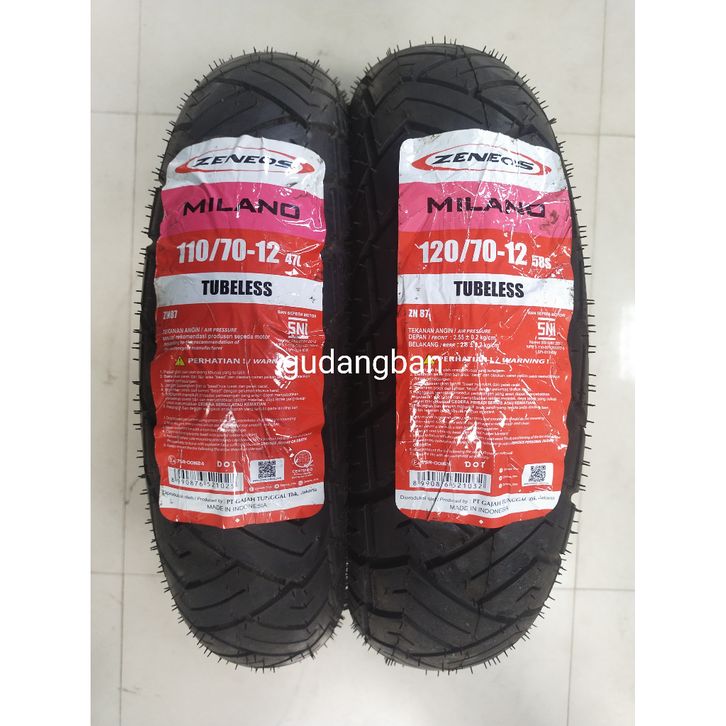 Paket Ban Zeneos 110 / 70 - 12 Dan 120 / 70 - 12 Milano ZN87 Vespa Matic TUBLESS TLPaket Ban Zeneos 110 / 70 - 12 Dan 12