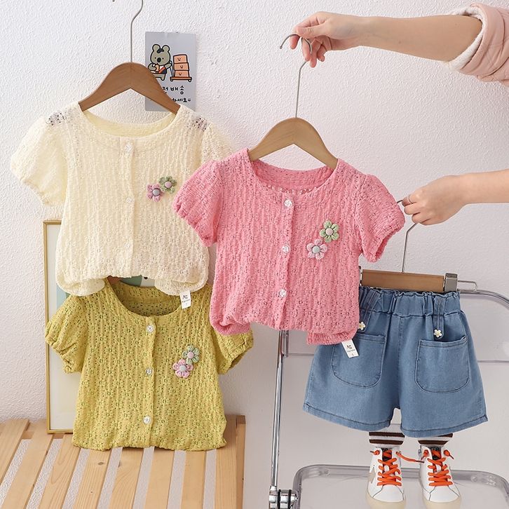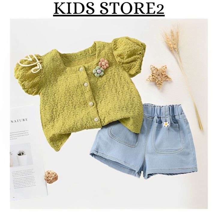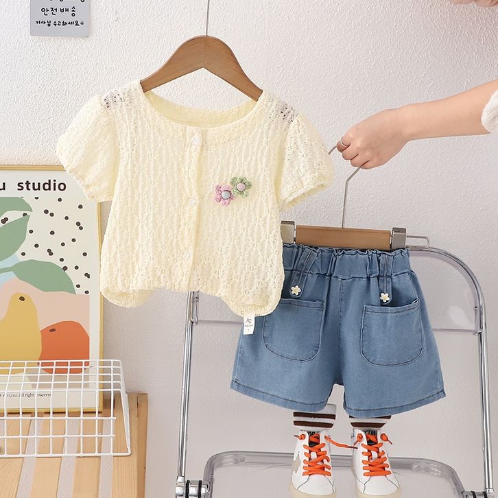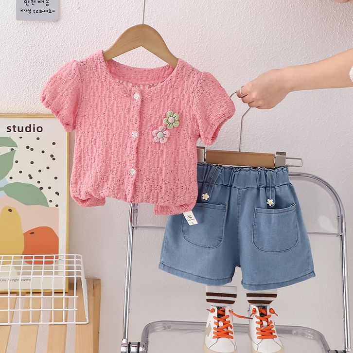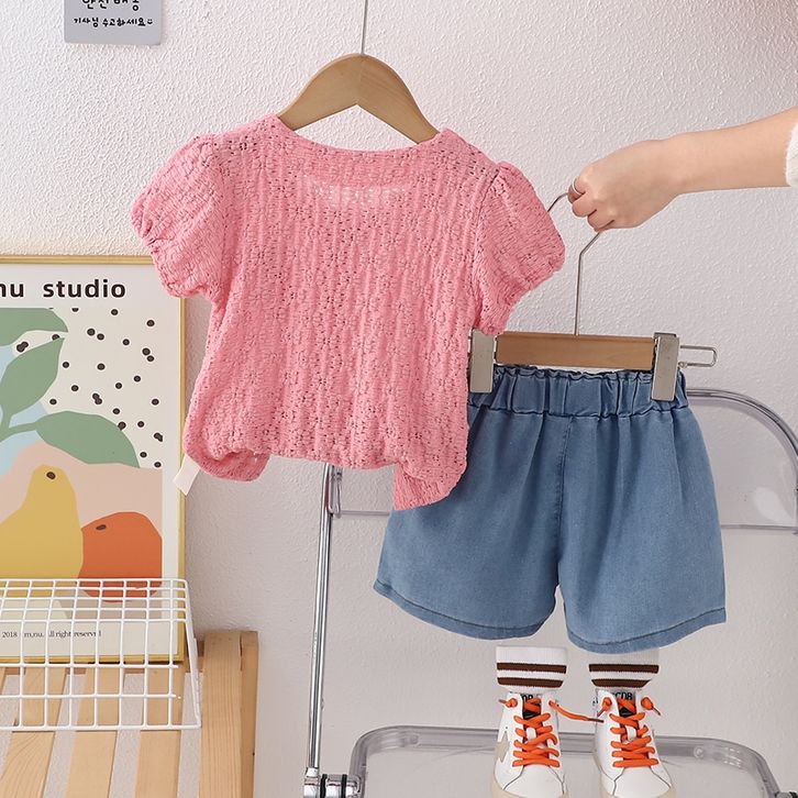 Setelan Baju Anak Perempuan Lengan Pendek Bahan Jeans Lembut Dan Bernapas Usia 1 - 4 Tahun Best Seller Termurah