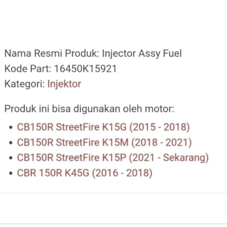 INJEKTOR / INJECTOR ASSY FUEL PUMP ORI CB150R STREET FIRE 16450-K15-921 CBR 150R K45 8