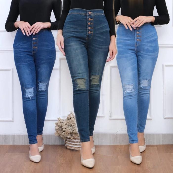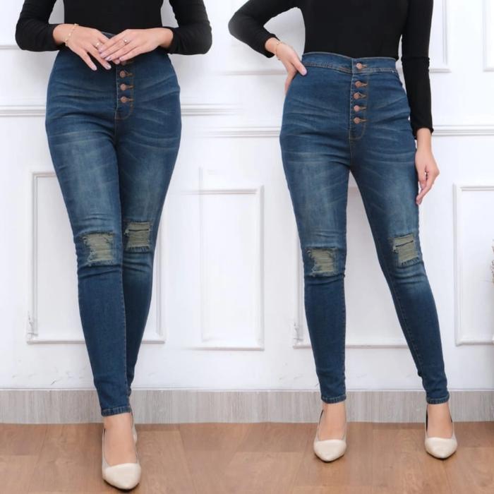 Celana Jeans Wanita HighWaist Ripped Tiara Premium