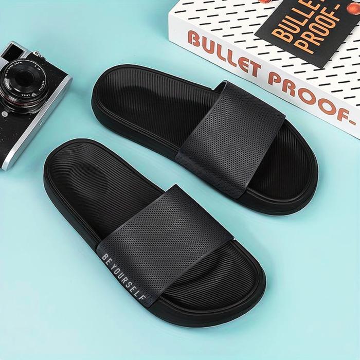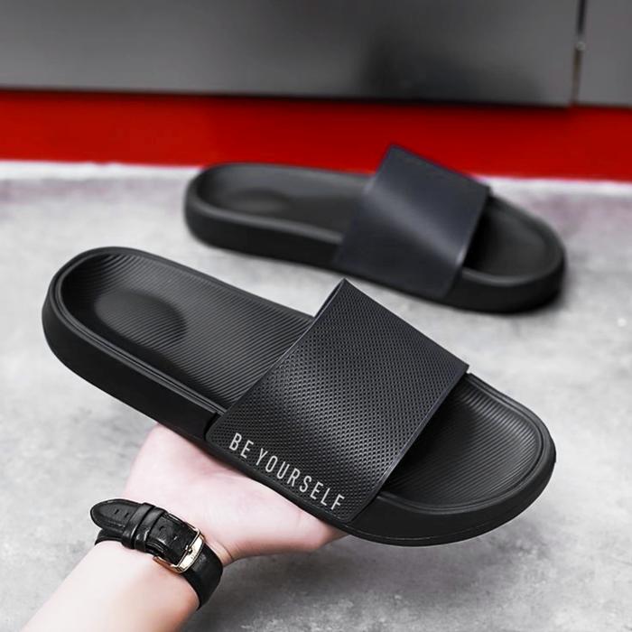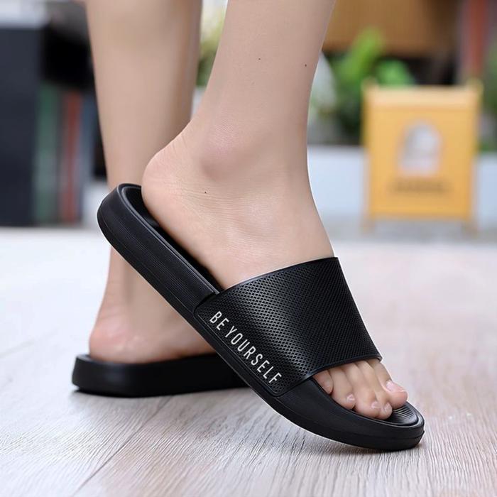 MJC INDONESIA Distro Selop Pria Wanita Sendal Slip On Full Hitam Sandal Selop Anti Slip Shoes 36-44 fleksibel elegan