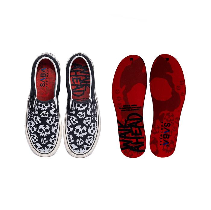 SABA Slip On Skull Head Black White - Sepatu Sneakers Casual Pria Wanita
