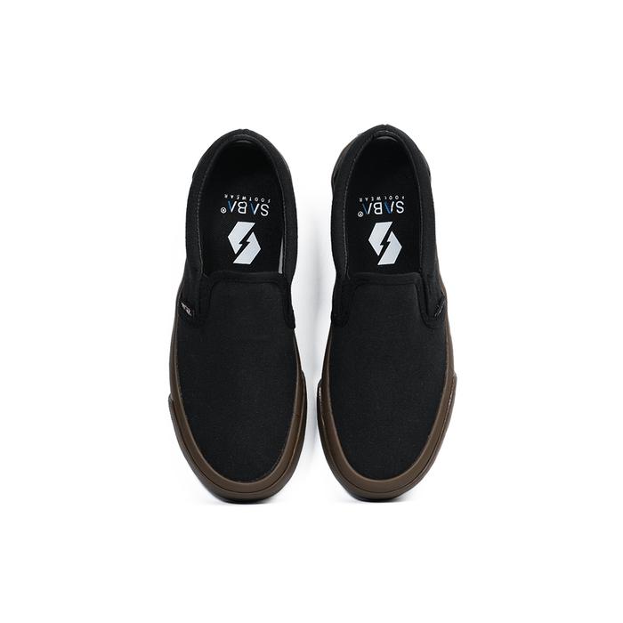 SABA Vintage Slip On ALL Black Dark Gum LX - Sepatu Sneakers Casual Pria Wanita