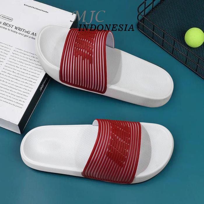 MJC INDONESIA Sendal Pria Kekinian Slip On Elastis Ringan Sandal Selop Luar Ruangan Red White Size 39-43