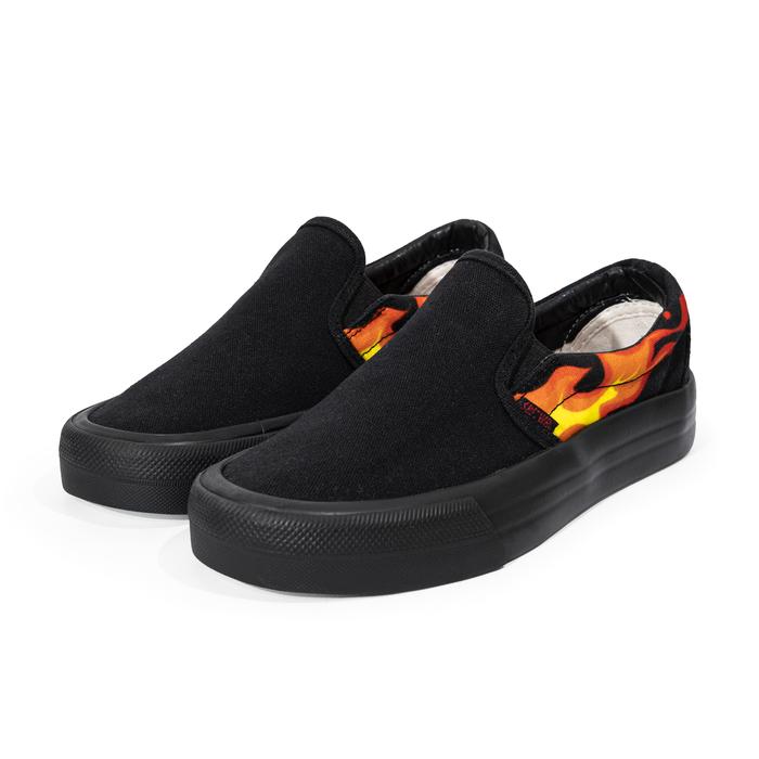 SABA Red Flame ALL Black Slip On - Sepatu Sneakers Casual Pria Wanita