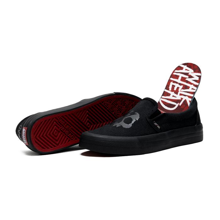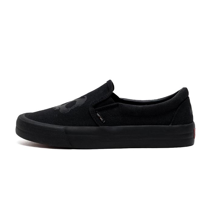 SABA Slip On Skull All Black - Sepatu Sneakers Casual Pria Wanita