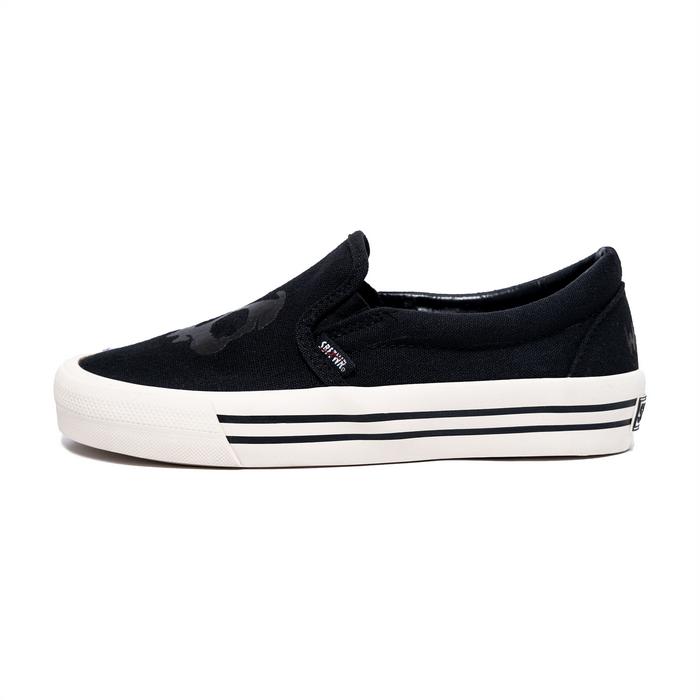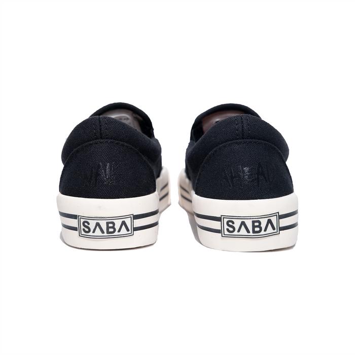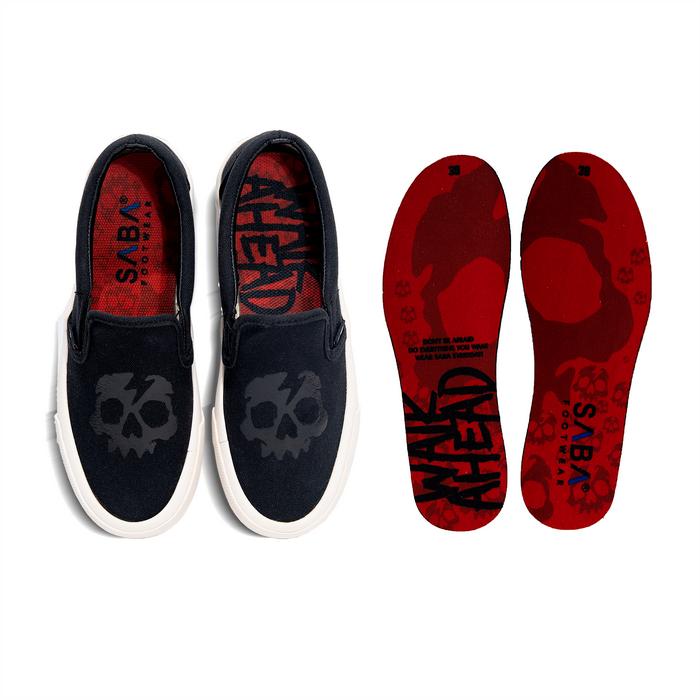 SABA Slip On Skull All Black White - Sepatu Sneakers Casual Pria Wanita