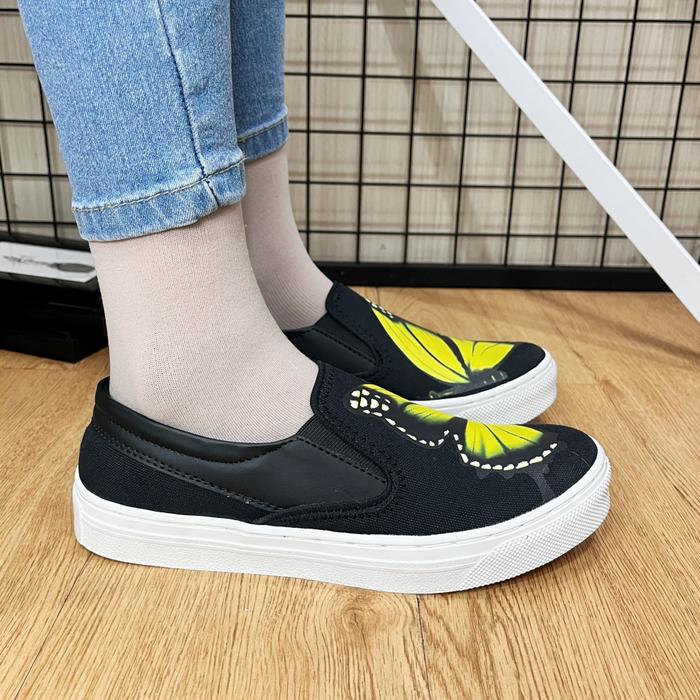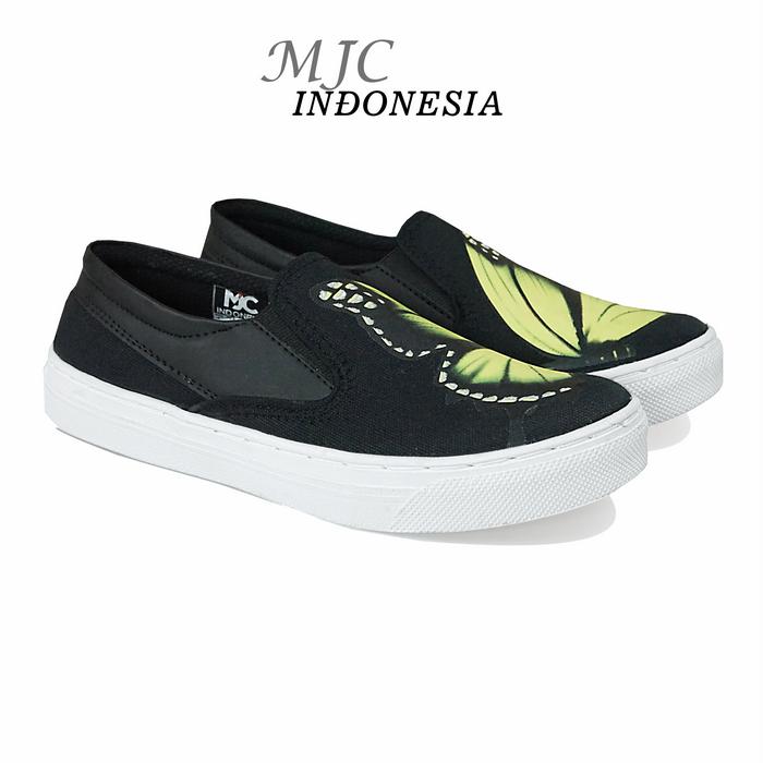 MJC INDONESIA Sepatu Kasual Slip On Cewek Terbaru Canvas Hitam Shoes Sneakers Kets Slip On Sekolah Kerja Sport Wanita