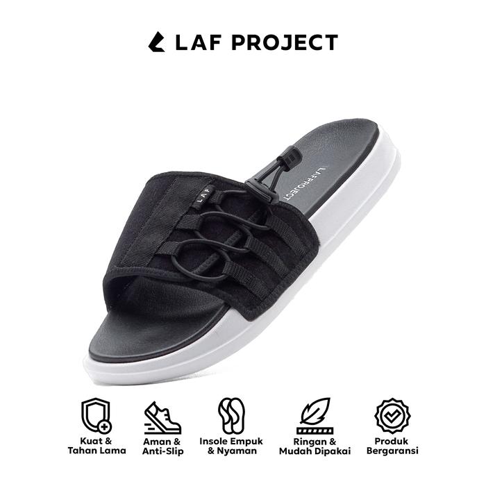 Sandal Pria Wanita Selop Karet Anti Licin Slip On Sendal Slide Casual Ringan Hitam Shanduko Black White LAF Project