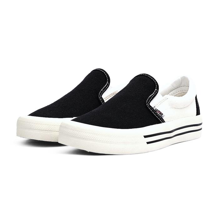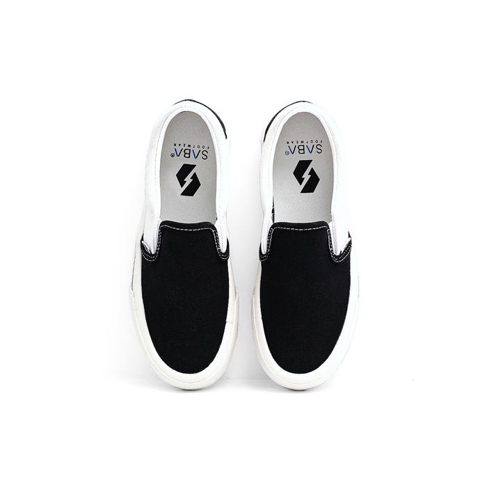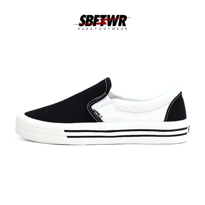 SABA Vintage Slip On Half Black White LX Black - Sepatu Sneakers Casual Pria Wanita