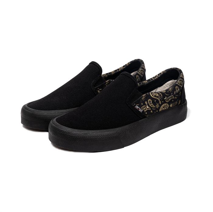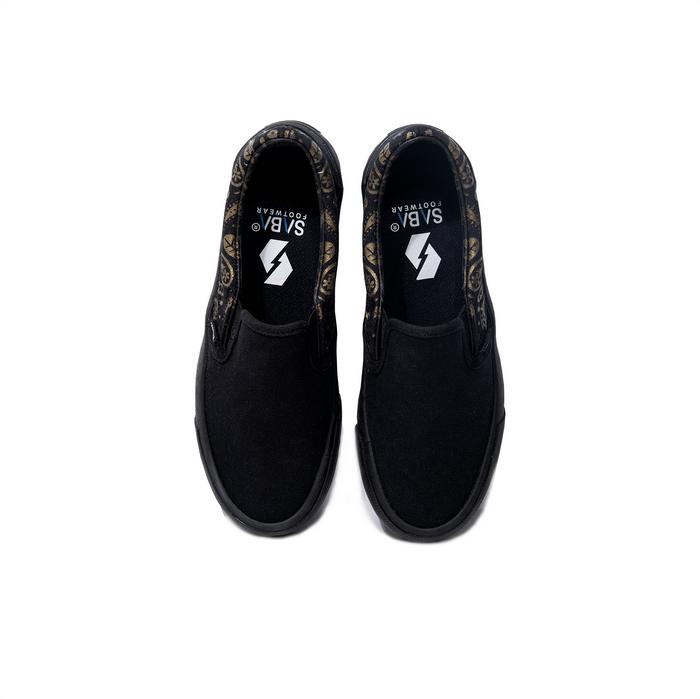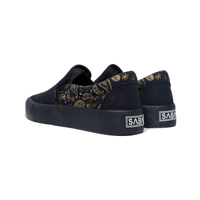 SABA Slip on Paisley Gold All Black- Sepatu Sneakers Casual Pria Wanita
