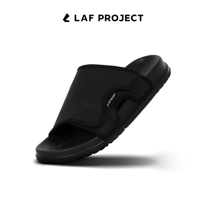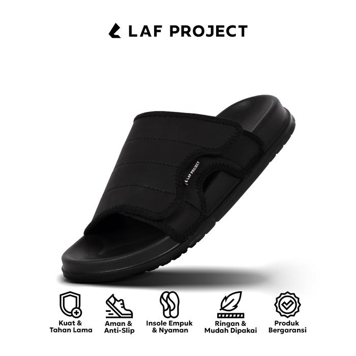 LAF Project - Sandal Slop Pria Slip on Slide Round Toe - Ace Shoes Sendal Selop Kasual Jepit Hitam