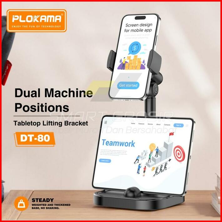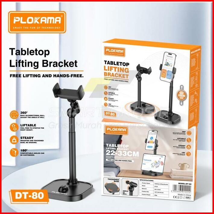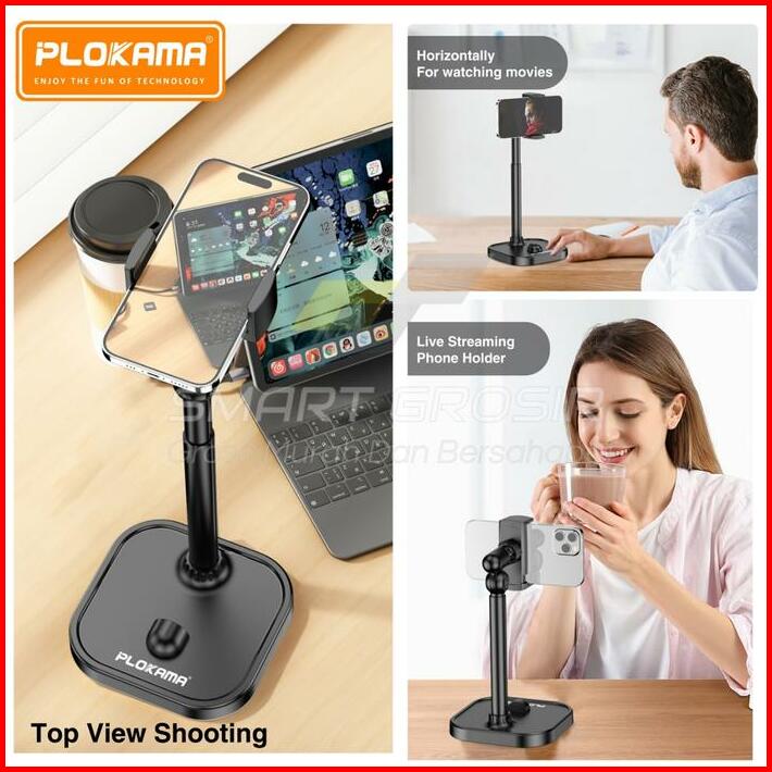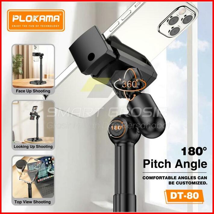 Stand Holder Hp Plokama Dt80 Aluminium Desktop Fleksibel 360 Rotate Meja Tripod Overhead Stand Handphone Smartphone