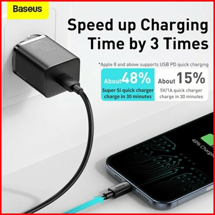 Adapter Charger Iphone 12 Pd 20w Original Baseus Fast Charging