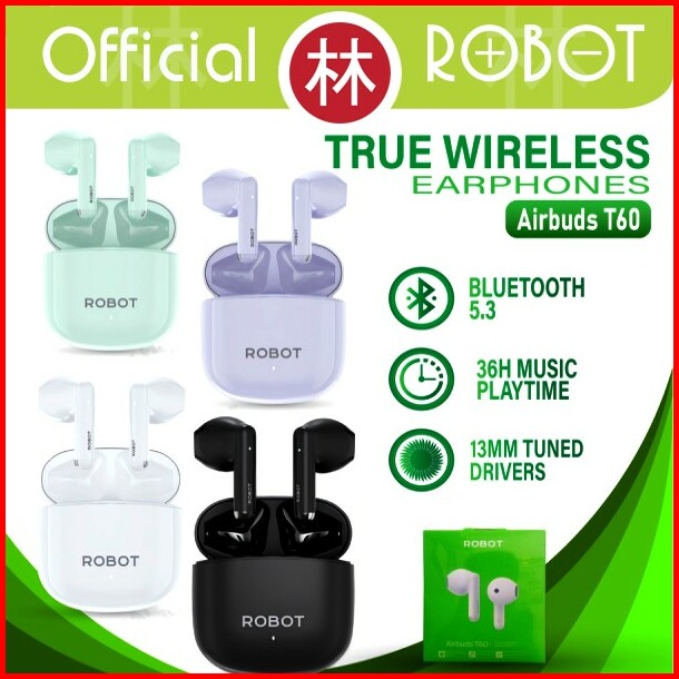 Robot Airbuds T60 Tws Half Ear Wireless Earbuds Earphone 13mm Bt 5.3