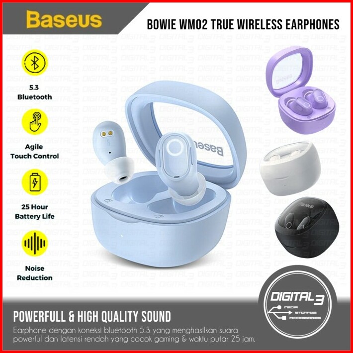 Baseus Bowie Wm02 True Wireless Earphones Tws Bluetooth 5.3 Headset Earbuds Gaming