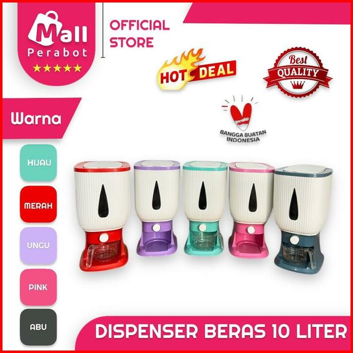 Mall Perabot Aff Dispenser Beras 10 Liter New Colours Rice Dispenser Tempat Wadah Penyimpanan Beras Otomatis Rice Box De