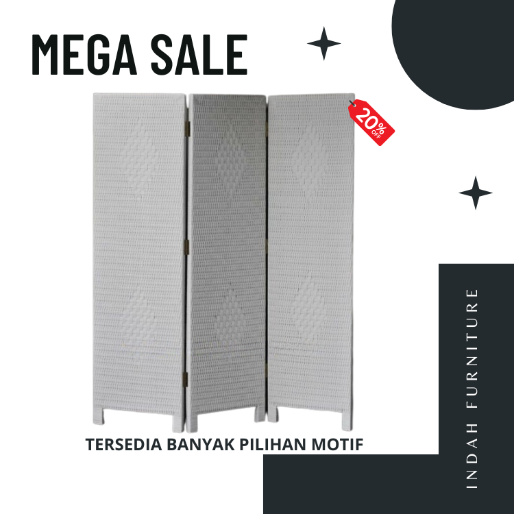 PENYEKAT RUANG TAMU VINTAGE PEMBATAS RUANGAN LIPAT KAYU ROTAN SINTETIS MINIMALIS PARTISI SEKAT SKETSEL MURAH TERBARU