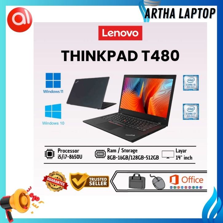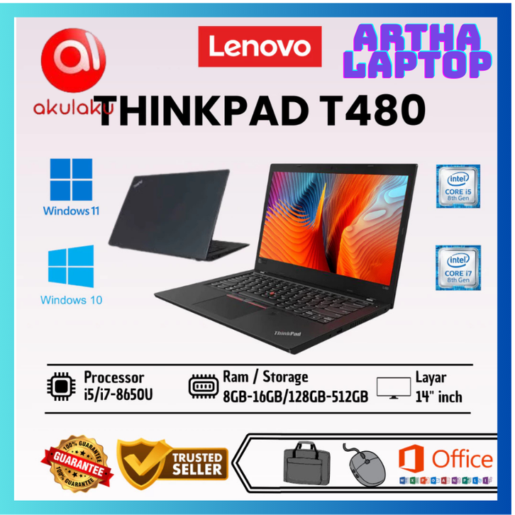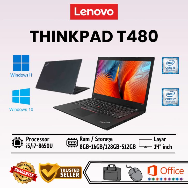 Laptop Lenovo Thinkpad T480 Core i5/i7 Gen 7/8 Ram 8/16GB SSD 128GB-512GB Second Bergaransi