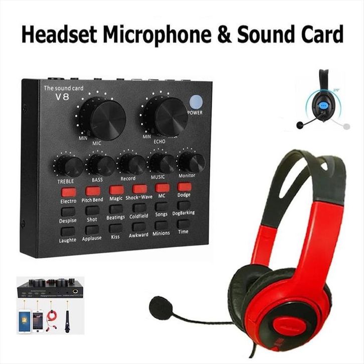 Set Headset Microphone X10 Plus Sound Card V8 - SoundCard + Set Headset Microphone X10