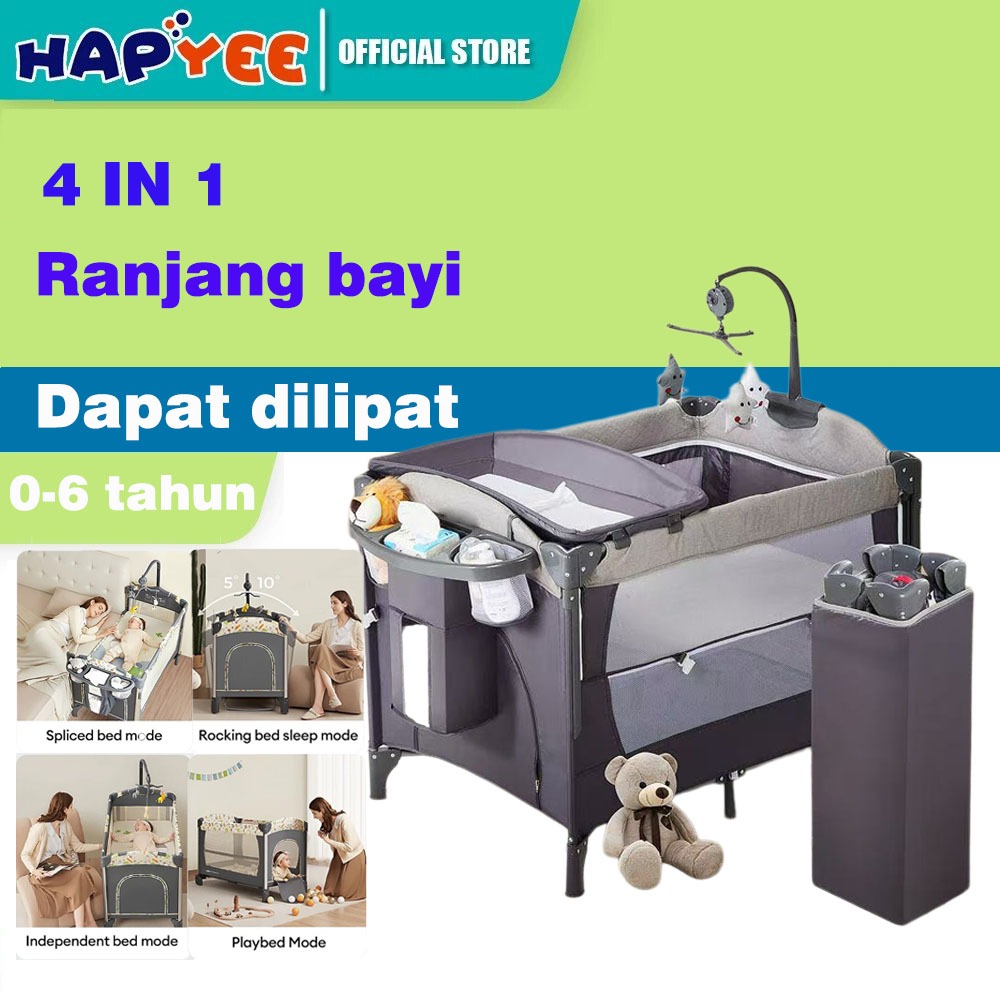 HAPYEE Tempat Tidur Bayi Lipat Portabel/Tempat Tidur Lipat Dengan Fungsi Anti-Terguling