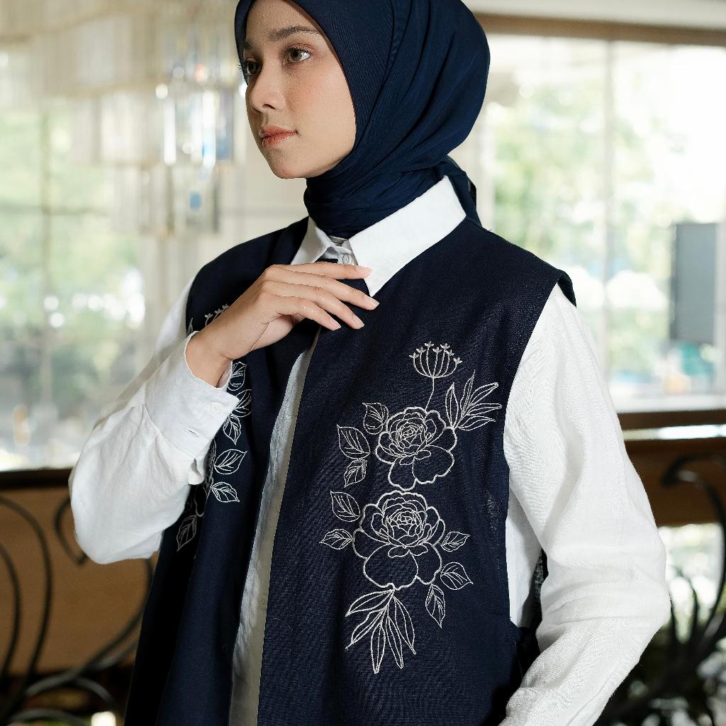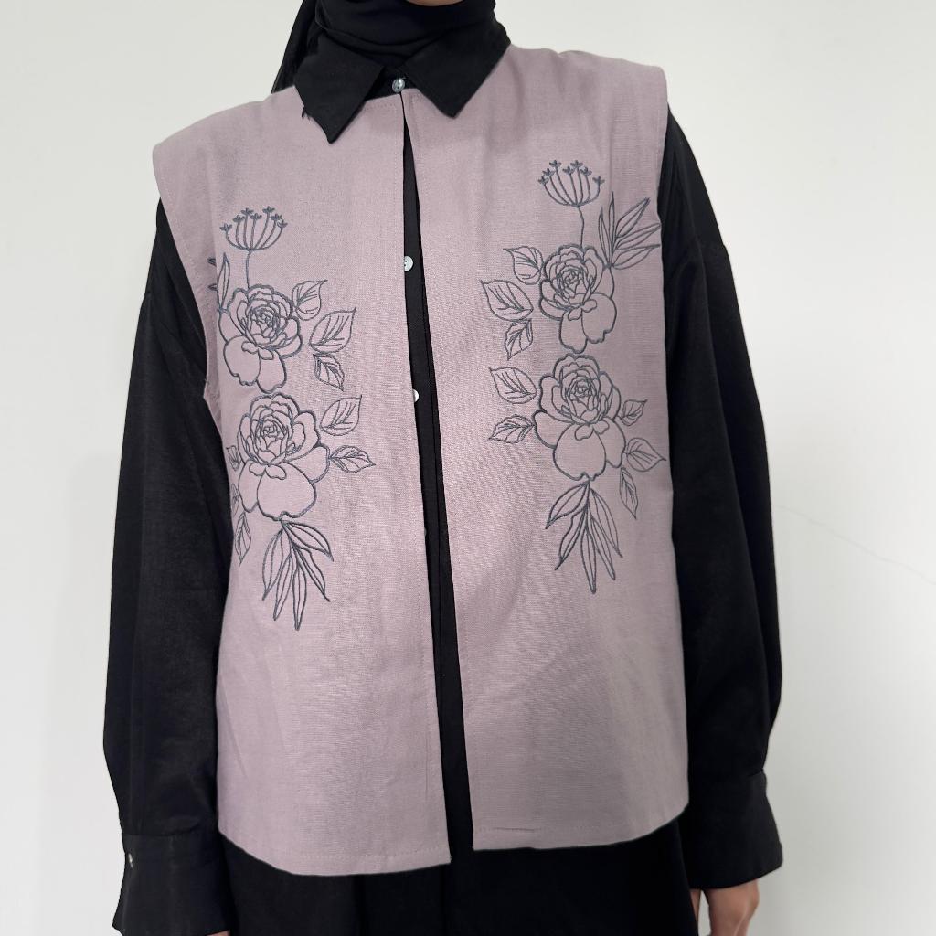 Outer Rompi Baju Vest Motif Bordir Bahan Linen Baju Atasan Tali Samping Kasual Terlaris
