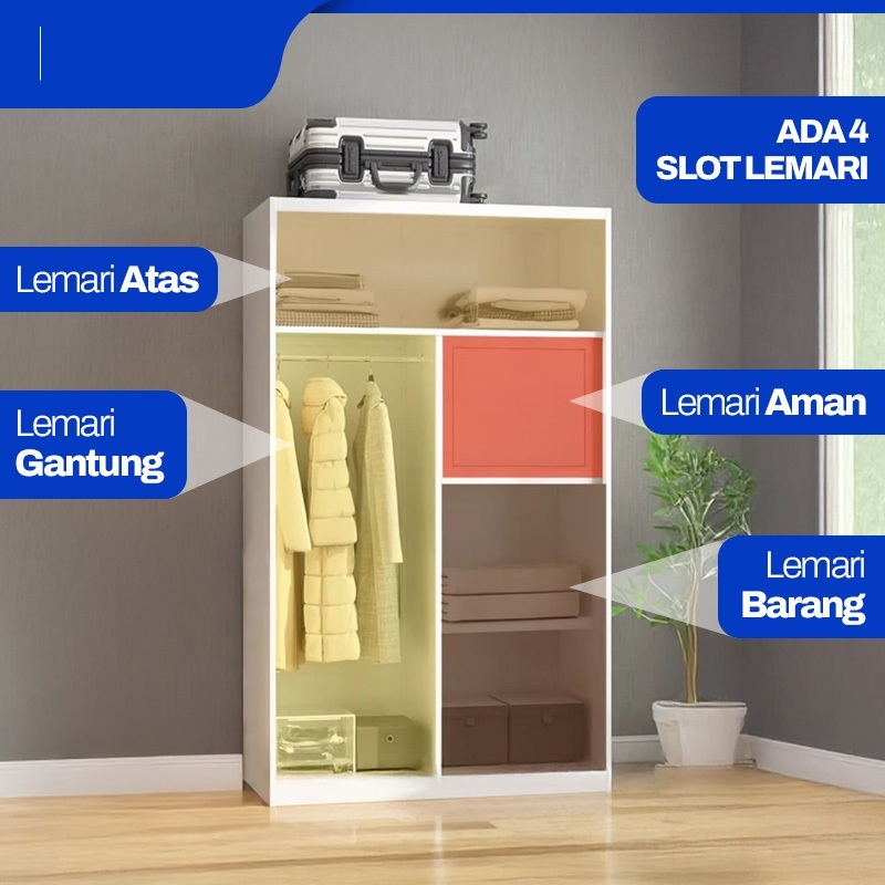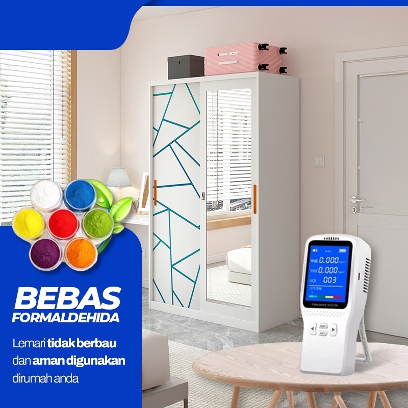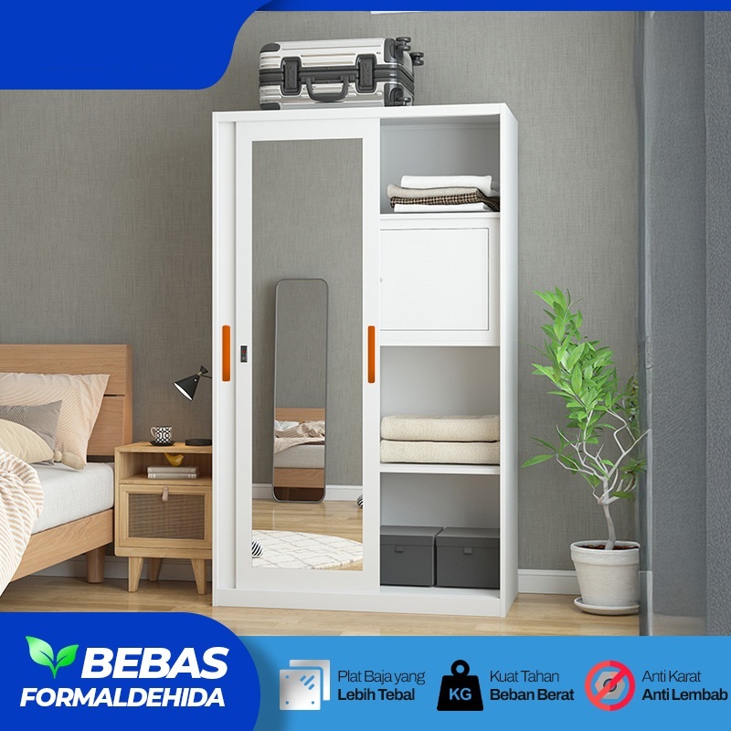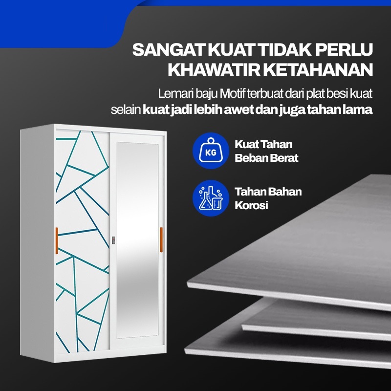 [Mall] LEMARI BESI SLIDING 2 PINTU LEMARI BESI PAKAIAN LEMARI BAJU MINIMALIS FULL MOTIF & FULL PLAT BESI