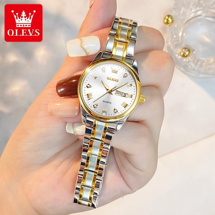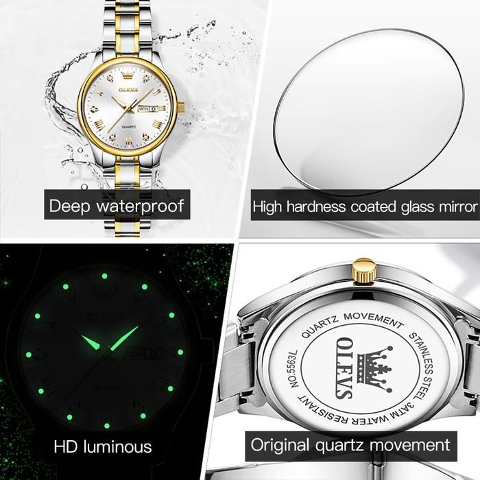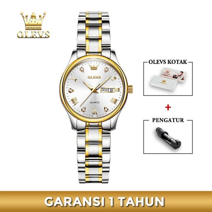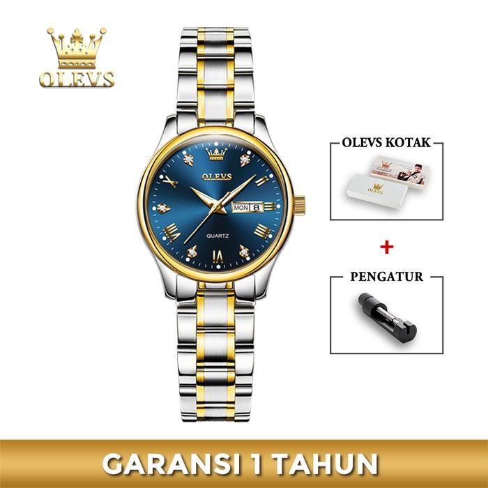 OLEVS Jam Tangan Wanita Anti Air Original Cewek Kalender Bercahaya Luminous Women Watch Stainless Steel Kaca - BIRU