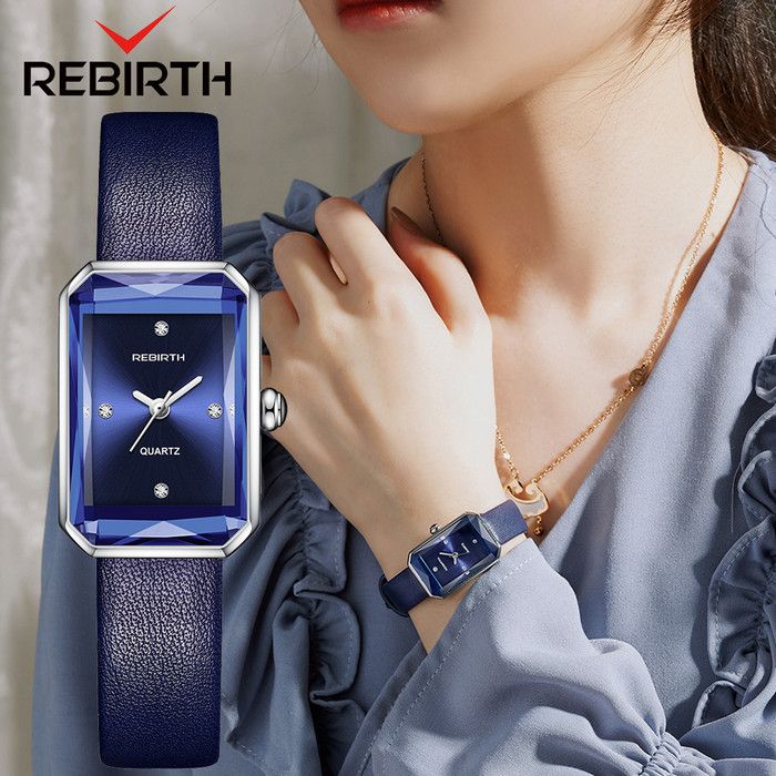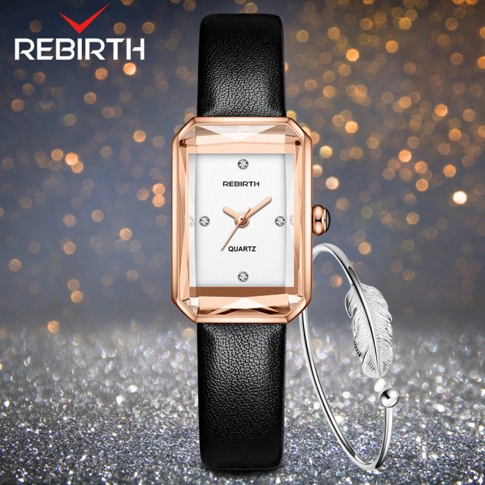 Jam Tangan Wanita REBIRTH Atas Bisnis Anggun Square Tali kulit Bisnis - PUTIH