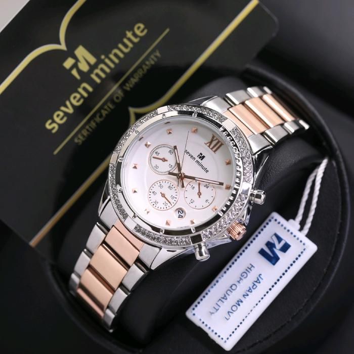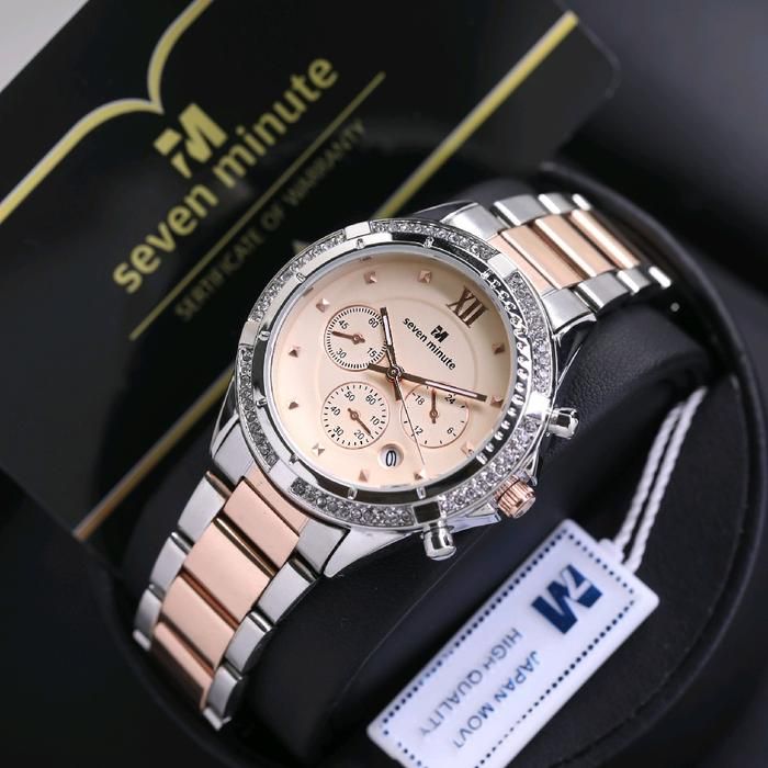 Jam Tangan wanita seven minute M741 tanggal bulat watches permata cewek tahan air - COMBI-ROSE