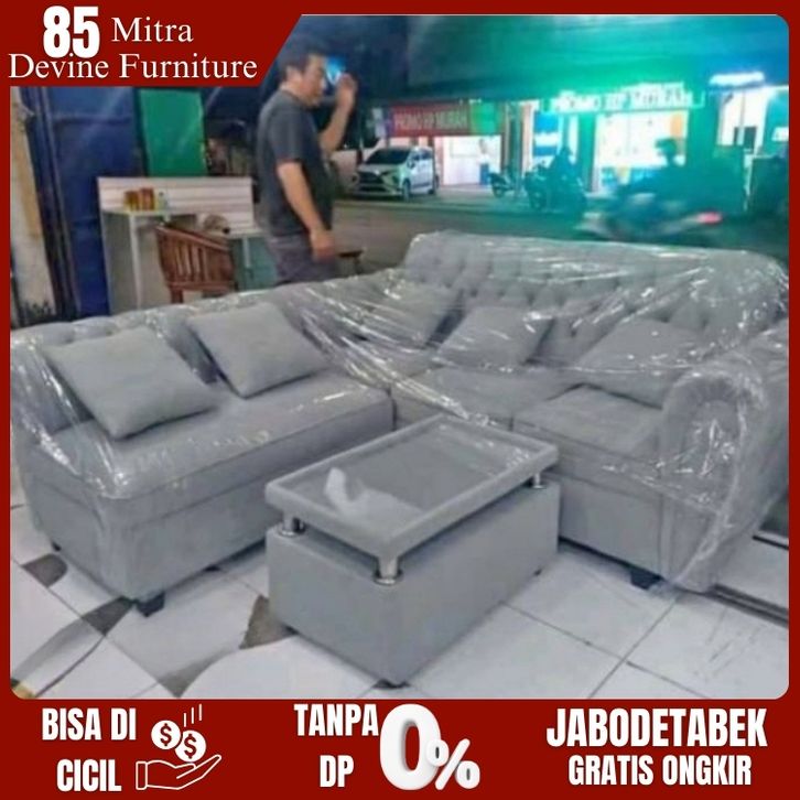 Sofa Ruang Tamu Kursi Ruang Tamu Sofa bed Minimalis SOFA L PUTUS MINIMALIS + MEJA GARANSI 3 TAHUN