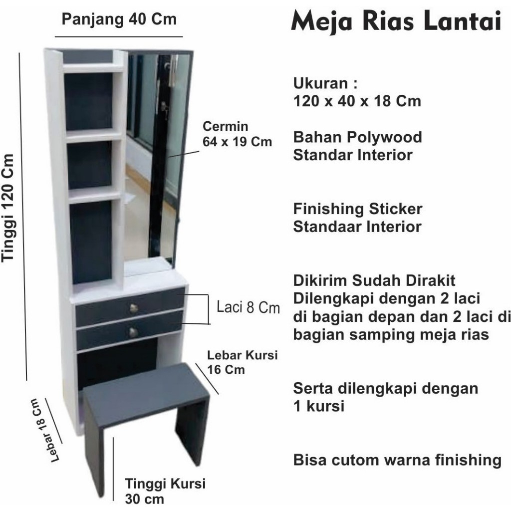 Meja Rias 4 Laci Dilengkapi Kursi Ukuran 120 x 40 x 18 Cm