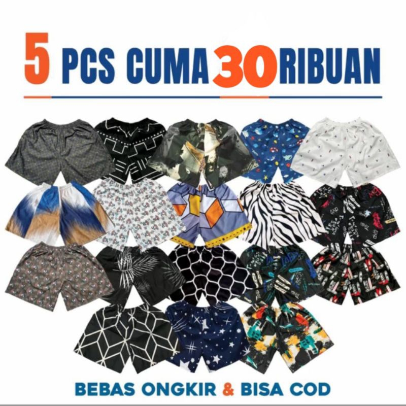 Grosir 5pcs Celana Pendek Motif Pria Wanita Dewasa Boxer Kolor Unisex Cowok Cewek Bebas Ongkir Dan Bisa