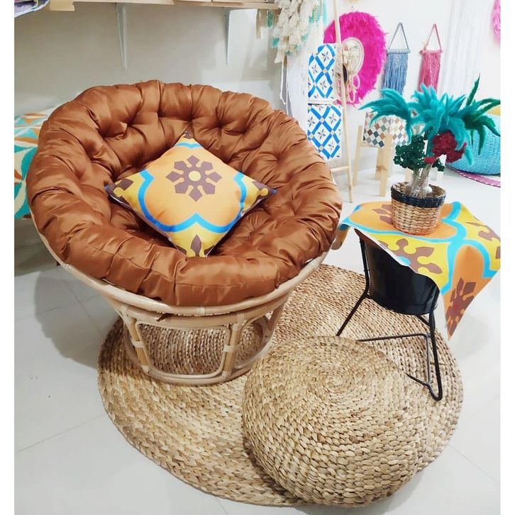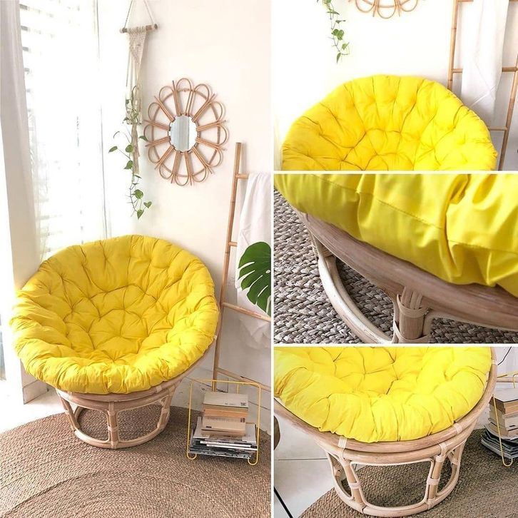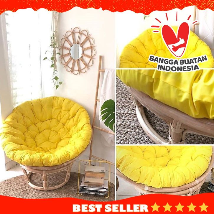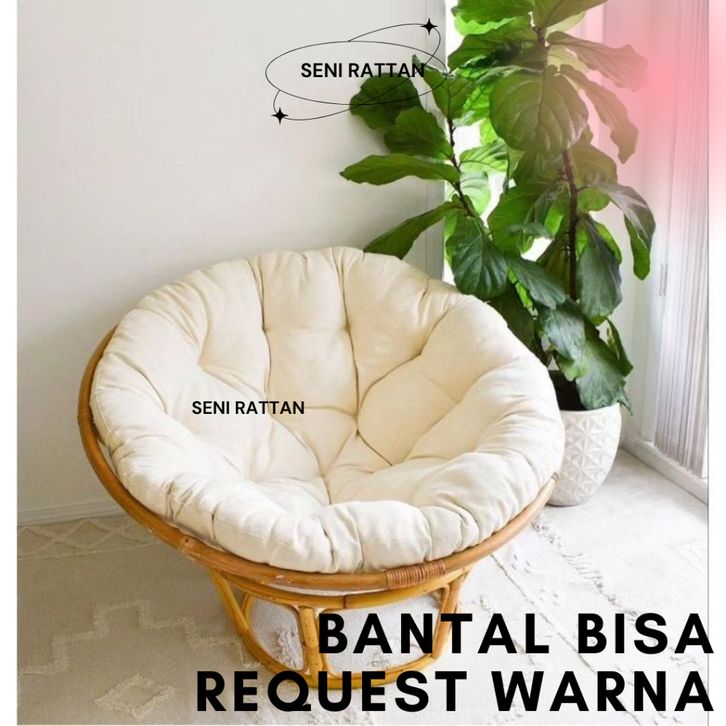 Kursi Santai Kursi Rotan Kursi Teras Santai Papasan Rotan Alami Bentuk Bulat Parabola Plus Bantal Empuk Terbaru