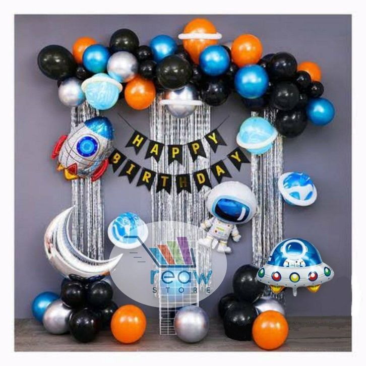 PAKET DEKORASI HIASAN BALON ULANG TAHUN LUAR ANGKASA ROKET ASTRONOT 08