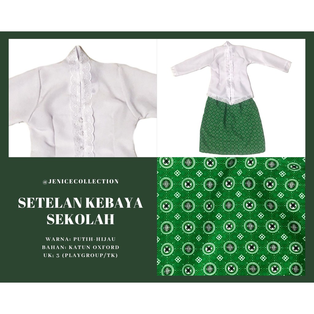 Setelan Kebaya Anak Putih Merah Hijau Seragam Sekolah TK SD Pakaian Baju Adat Perempuan Sunda Encim