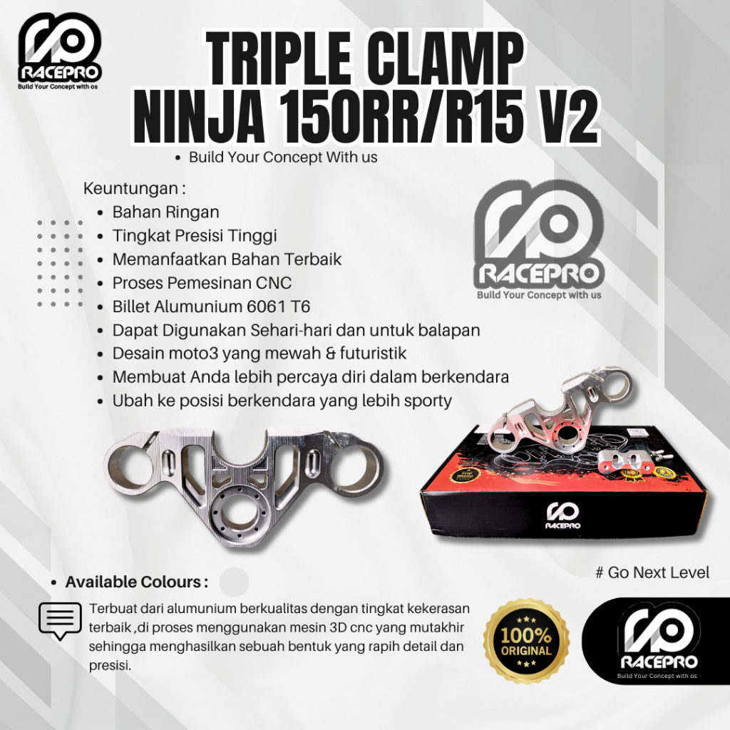 TRIPLE CLAMP NINJA 150RR & R15 V2 SEGITIGA ATAS RACEPRO FOR NINJA RR & R15 V2 TRIPLE CLAMP RACEPRO