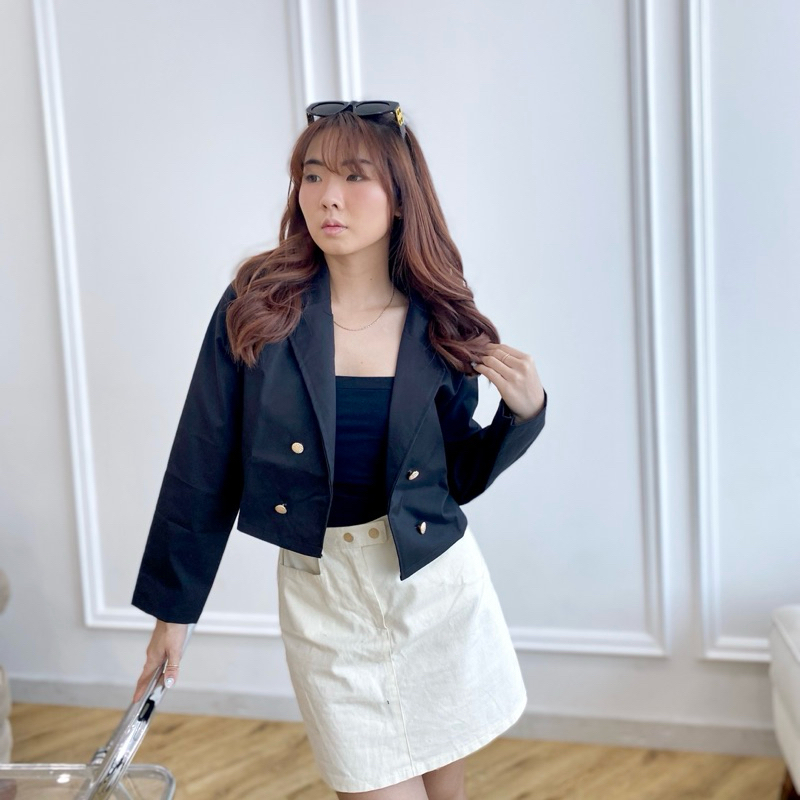 AVE 053A - Zoey Top Basic Crop Blazer Atasan Blazer Crop Wanita Lengan Panjang Catoon Twill