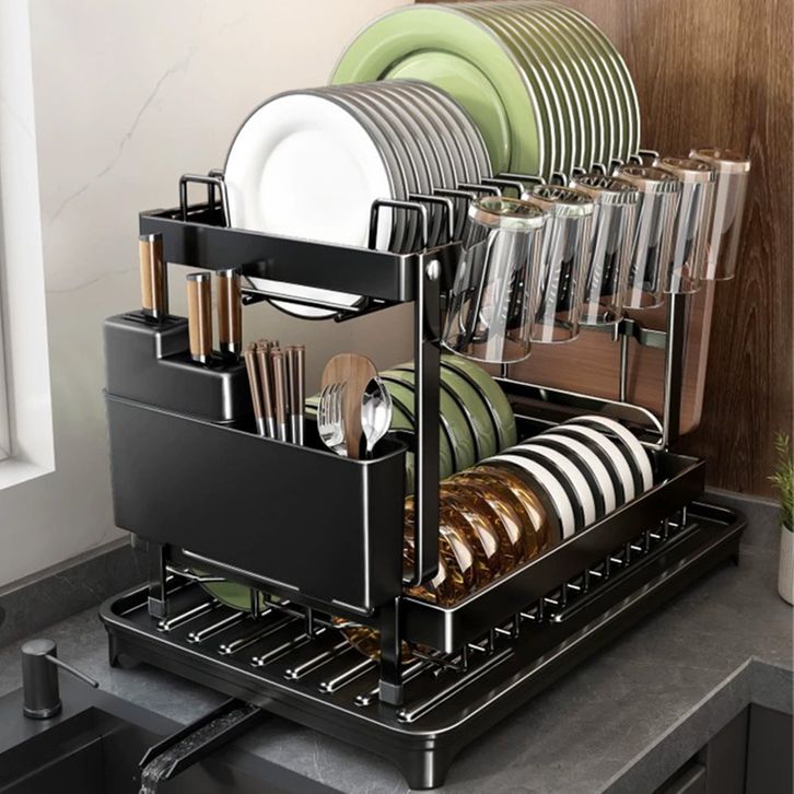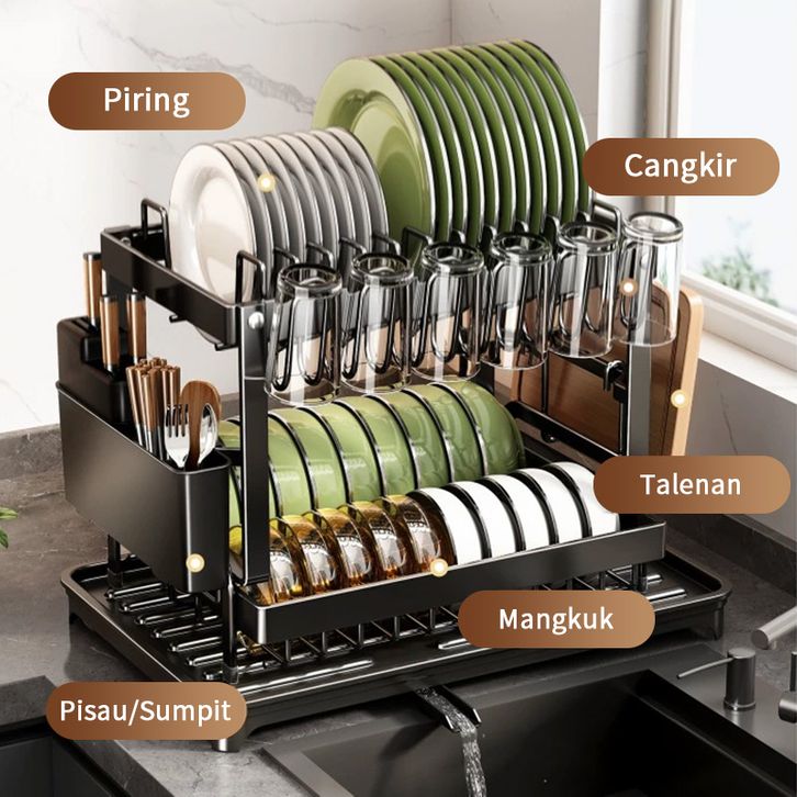 Rak Piring Dapur Rak Peniris Piring Dapur Rak Pinggan Rak Penyimpanan Dapur Dengan Nampan