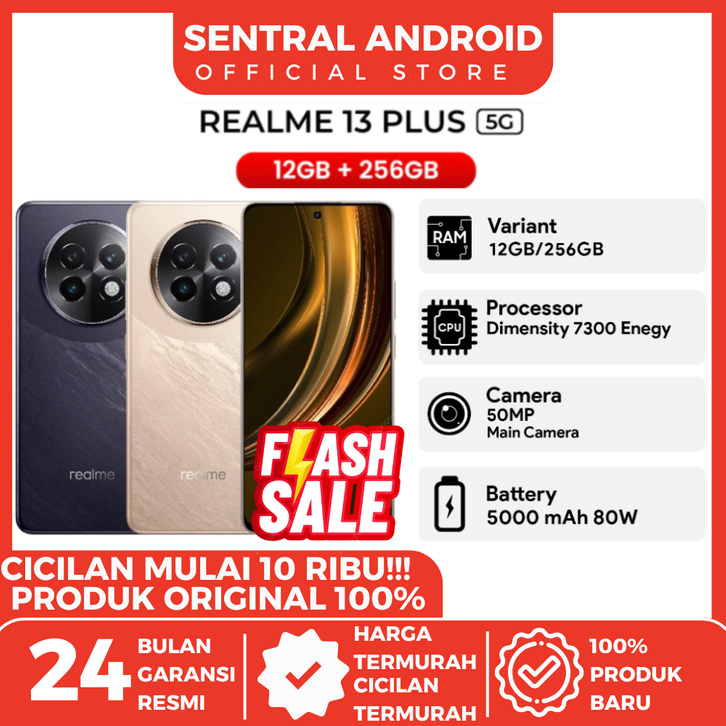 Realme 13 Plus 5G 12/256GB | 5G Dimensity 7300-Energy | 80W Ultra Charge | Garansi Resmi Realme