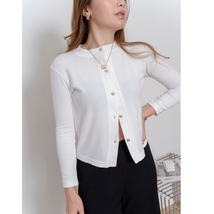 AIJO Lizzie Cardigan - Atasan Wanita Lengan Cardigan Panjang Kancing