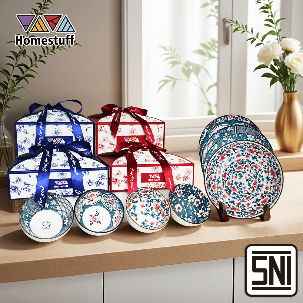 [SNI] HOMESTUFF HAMPERS SET PIRING DAN MANGKOK MEWAH / SET PERALATAN MAKAN KERAMIK / HADIAH PERALATAN MAKAN / HAMPERS HADIAH / KOTAK KADO