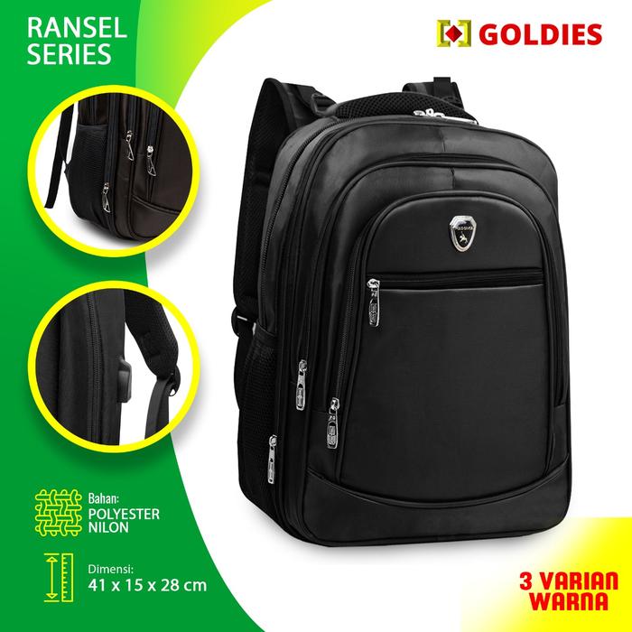POLO GIVES - Tas Ransel Kerja Pria POLO Original Import 18in FREE USB C + RAINCOVER - -iesbags - Hitam