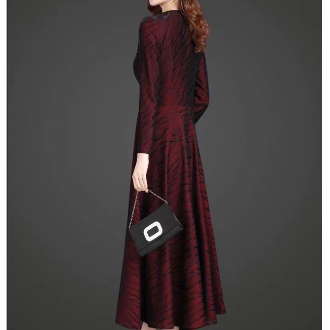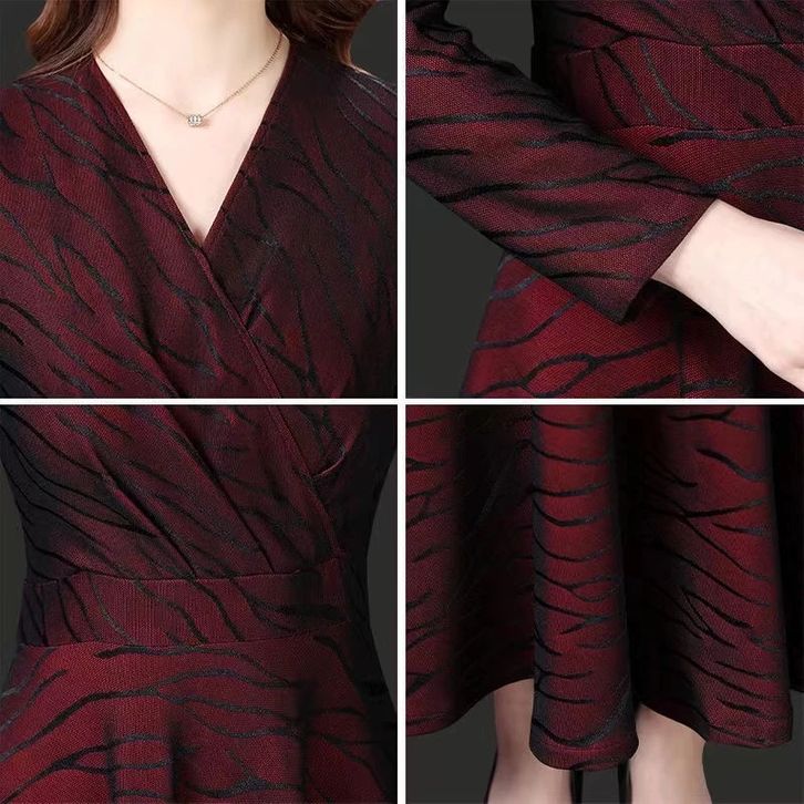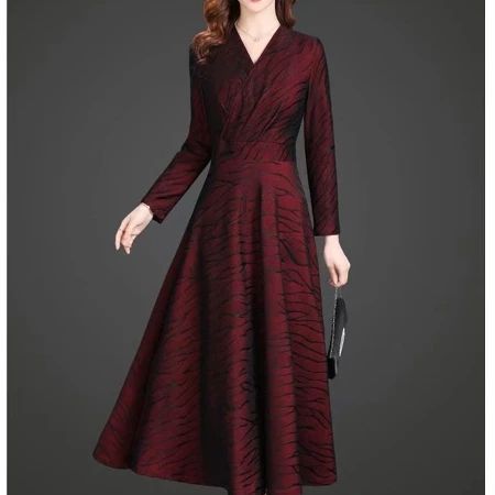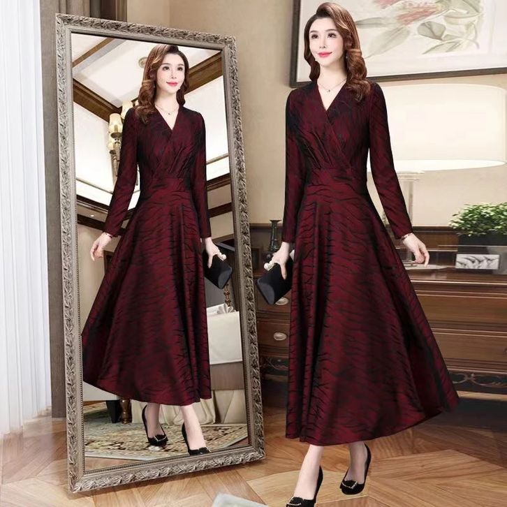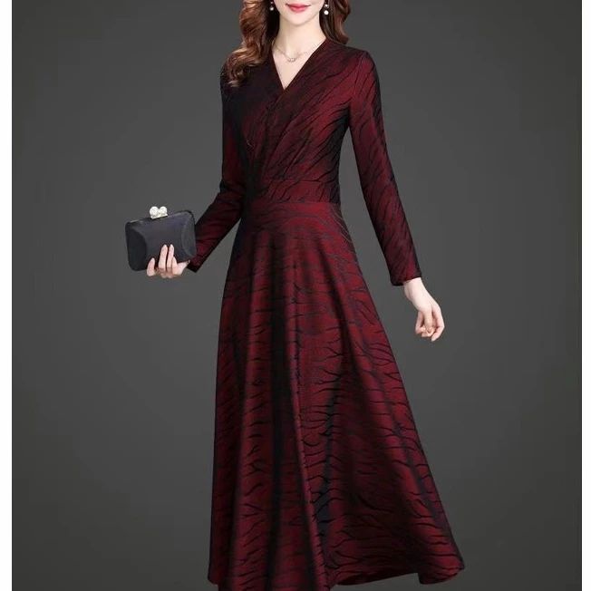 fan 2025 korea baru v -neck gaun pesta merah lengan panjang midi dress korea dress pesta dress wanita kekinian