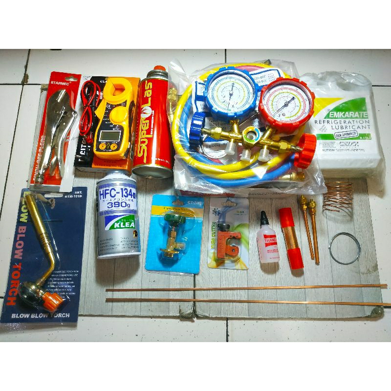 paket lengkap Manifold Double berserta oli untuk servis kulkas dan las kulkas untuk pemula