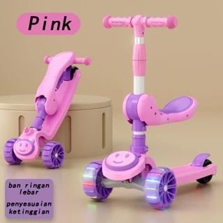 Mainan Skuter 2in1 Mainan Scooter Anak Roda 3 dengan Dudukan + Lampu Pada Roda 2-12Tahun
