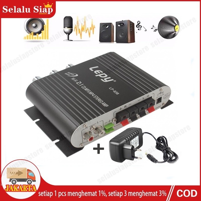 AMPLIFIER BLUETOOTH SUBWOOFER / LVPIN LEPY MINI HIFI 2.1 STEREO AMPLI MOBIL AMPLIFIER TREBLE BASS BOOSTER 12V LP-838 ORI