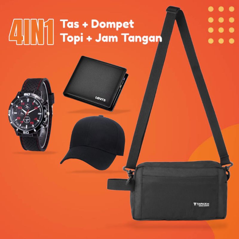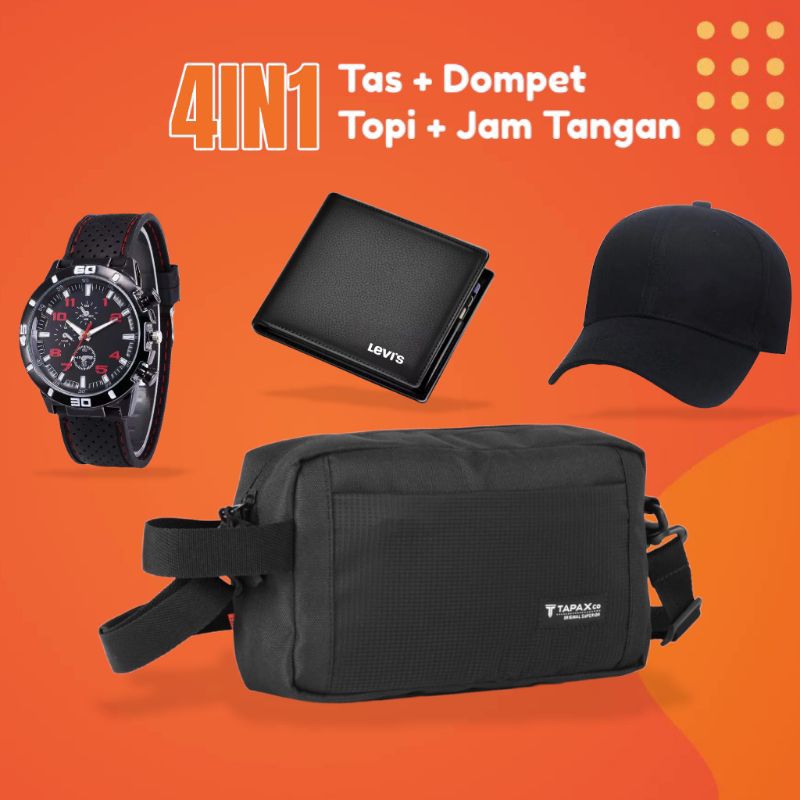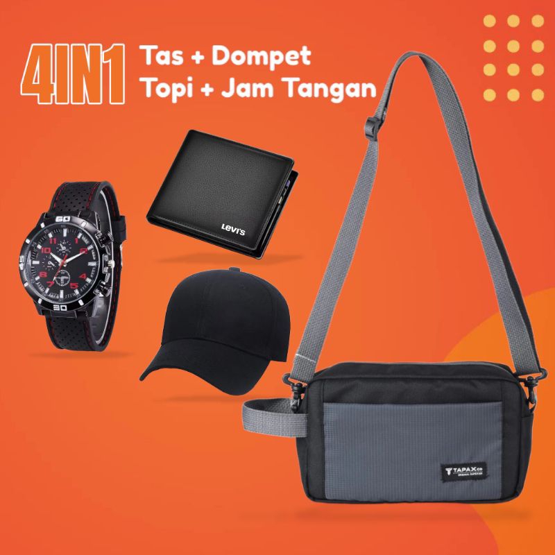 Tas Selempang Pria Anti Air / Tas Bahu Multifungsi Slingbag Unisex Paket 4in1 Get Free Jam Tangan / Topi / Dompet Kulit