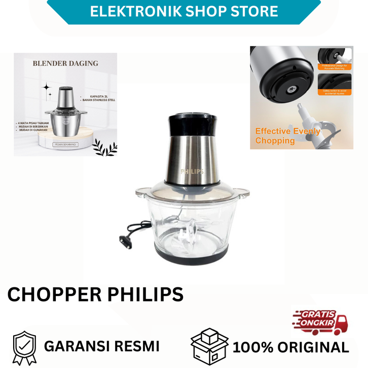 CHOPPER PHILIPS BLENDER 2L PENGGILING DAGING BUMBU CABAI SERBAGUNA 400W MENGHALUSKAN DAGING CINCANG BAWANG